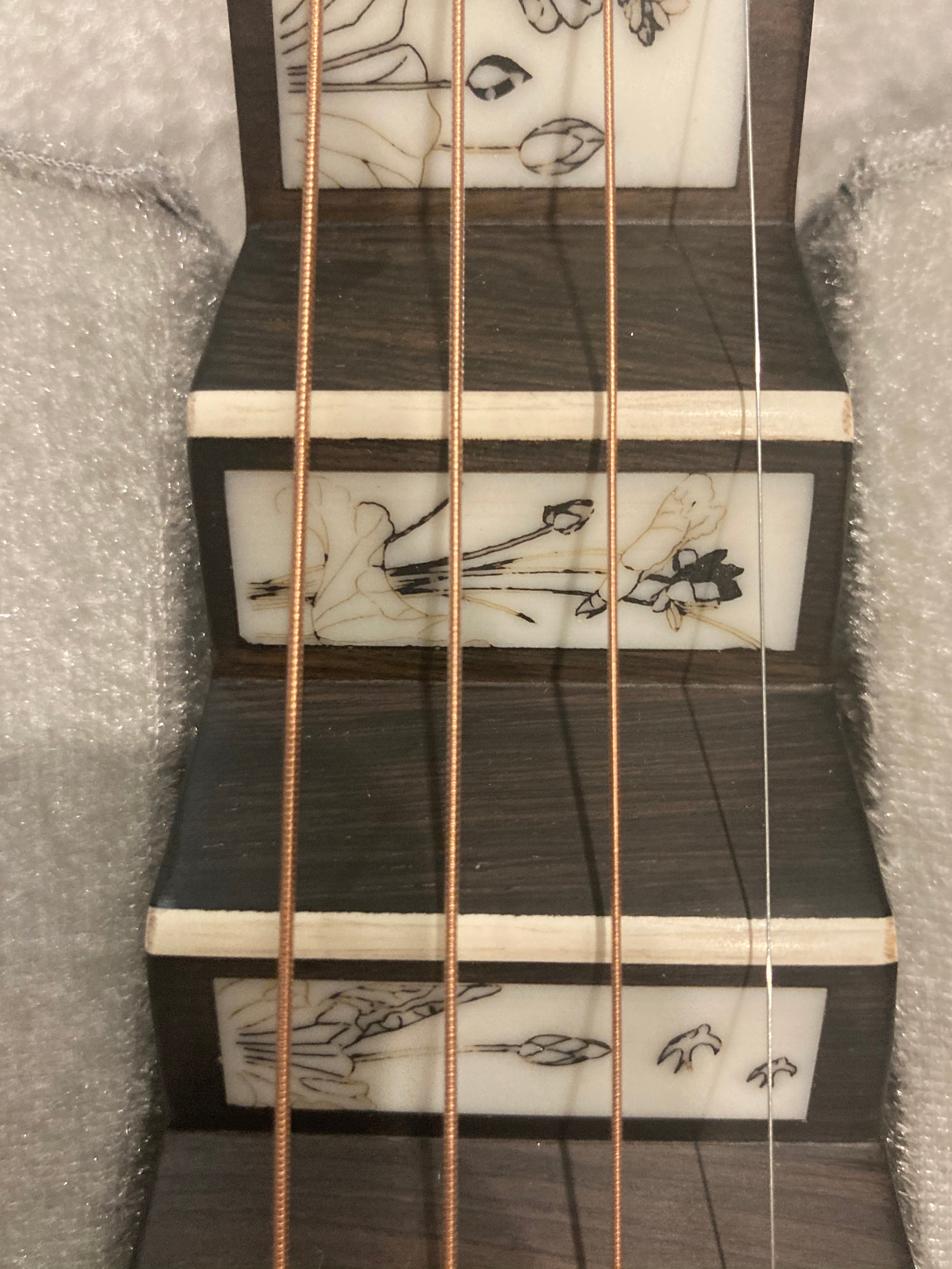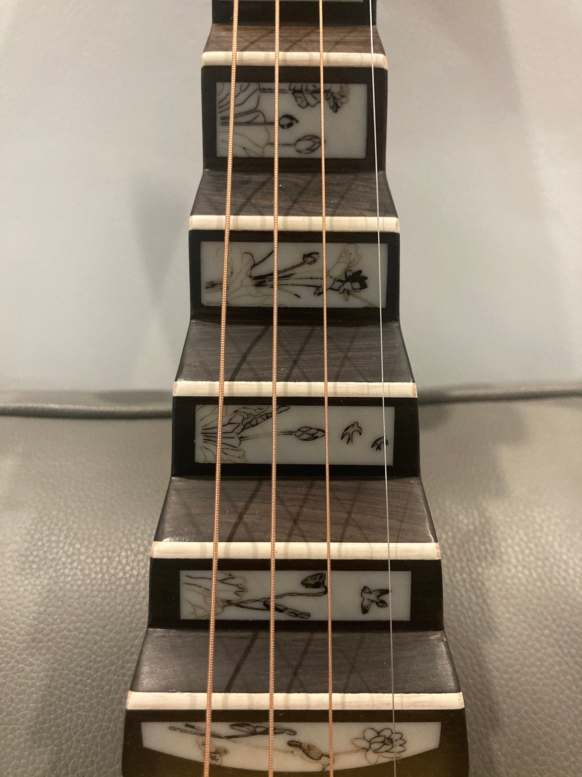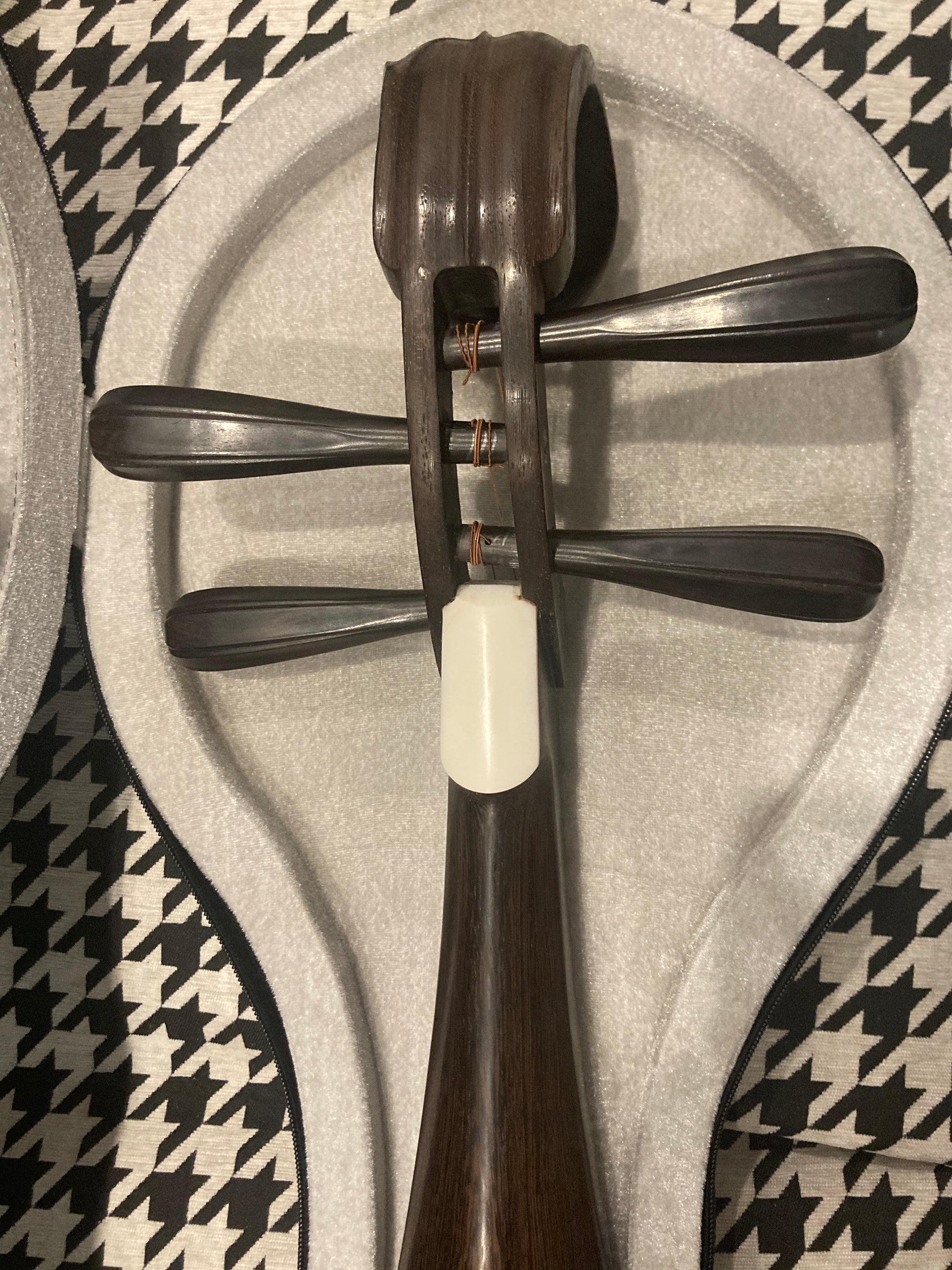 • The latest style of the pipa which has a Unique shape ,and it shows a good theater. Neck with bone cravings. Pegs made of ebony wood.