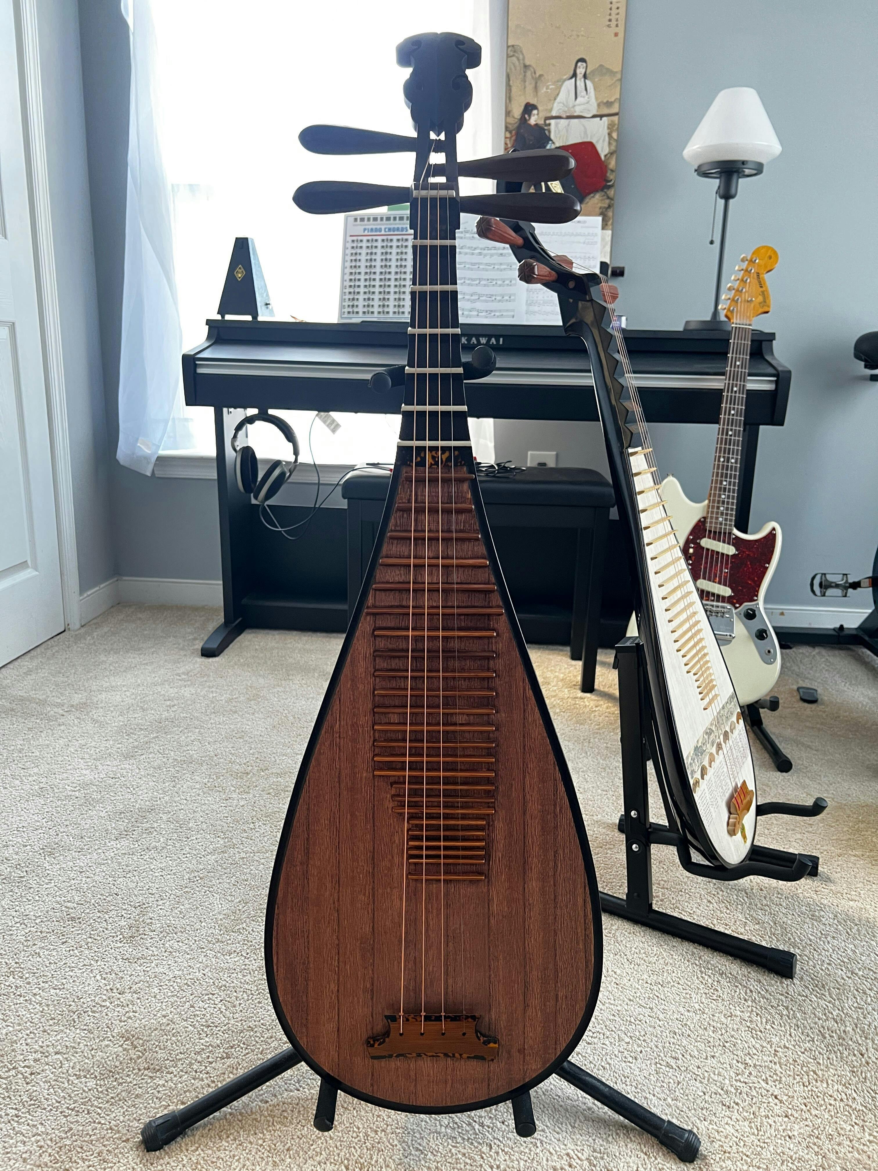 Pipa Made of seleced Chicken-wood,with phoneix head The maker has been making pipa for 30 years, famous all over china and abroad countries Pipa is specific for professional teachers and performers The wood and sound are both extrmely well